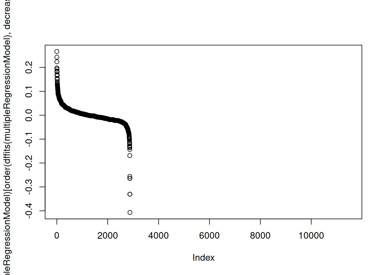 plot(dffits(multipleRegressionModel)[order(dffits(multipleRegressionModel), decreasing = TRUE)])
