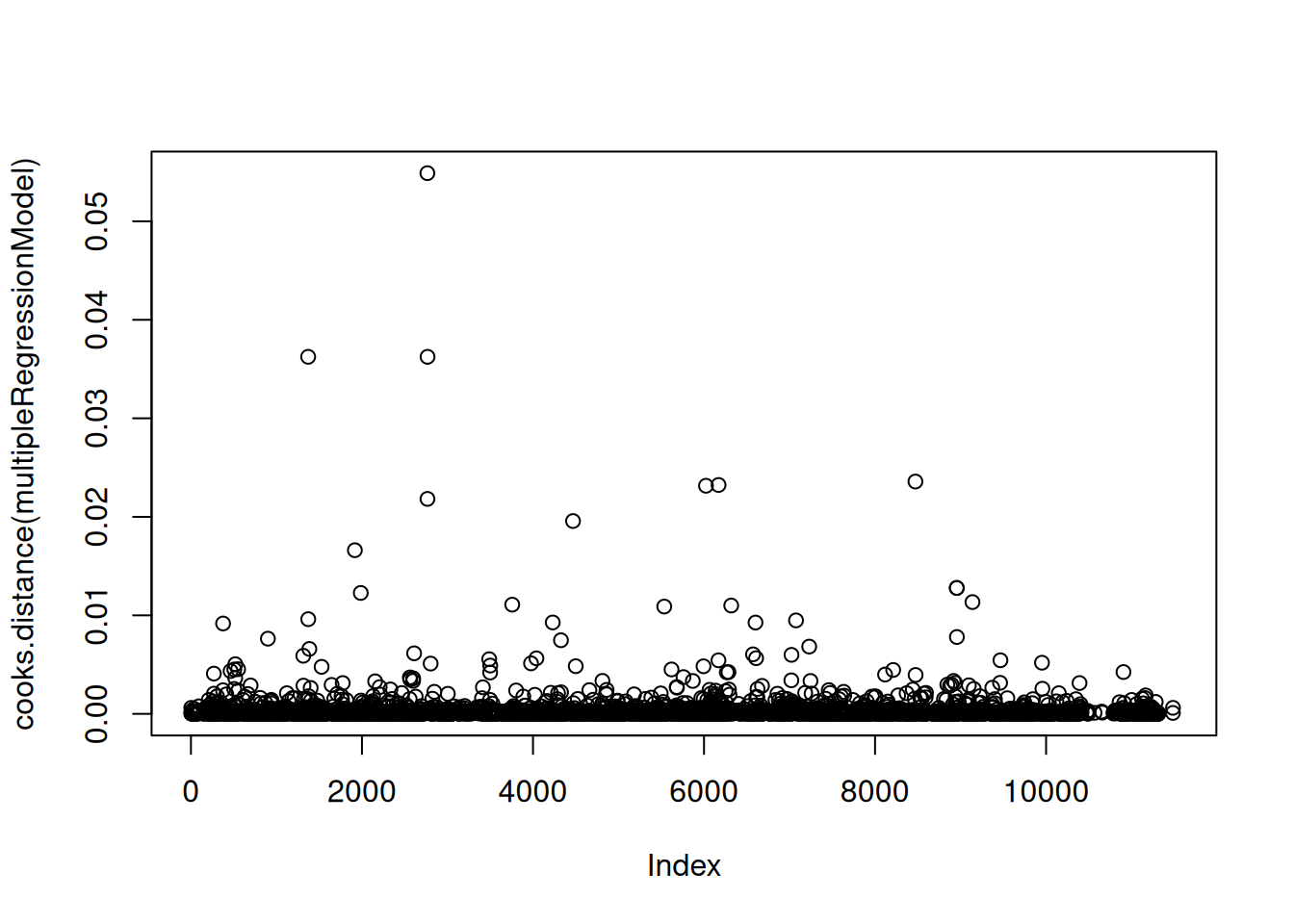 plot(cooks.distance(multipleRegressionModel))