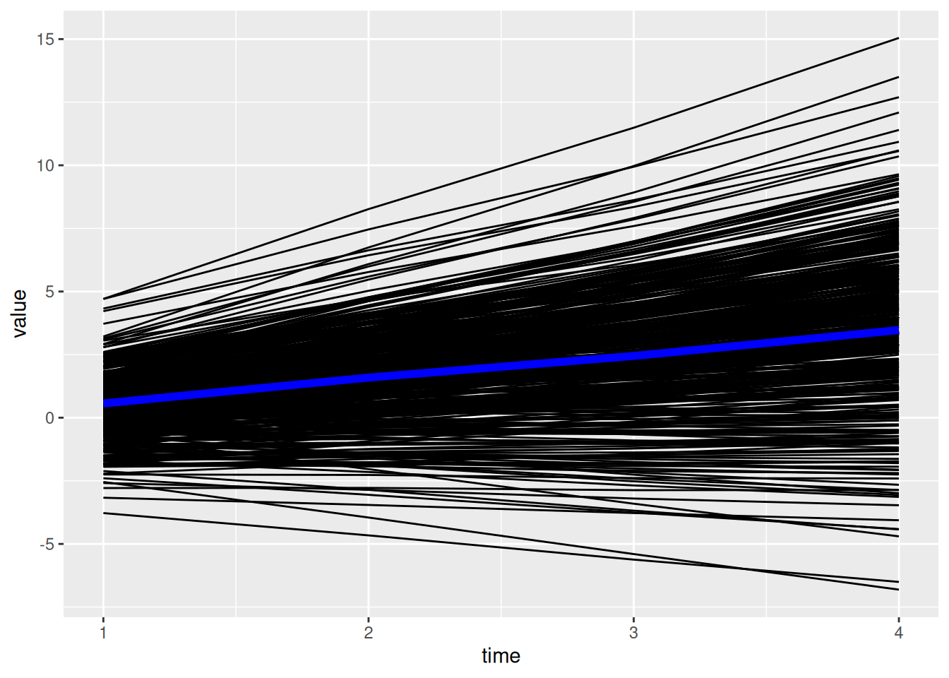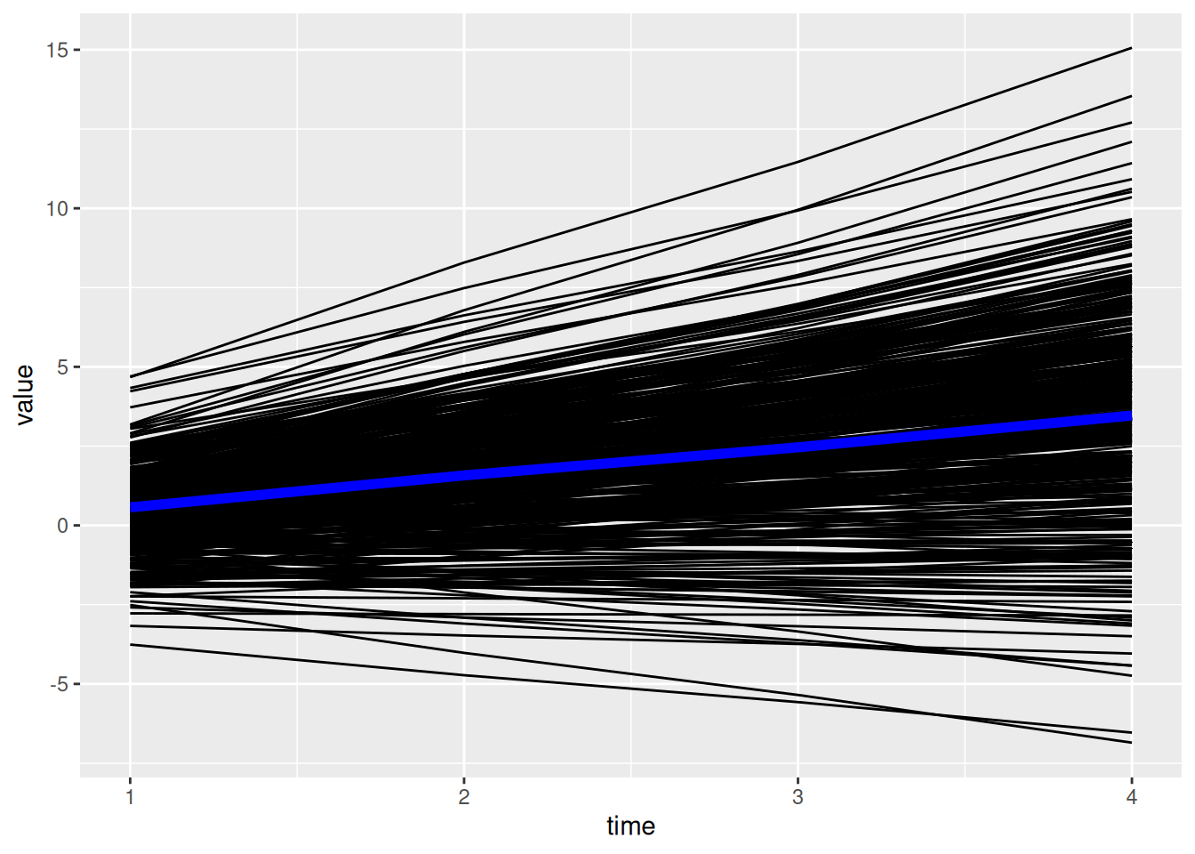 Demo.growth_long$timepoint <- as.numeric(Demo.growth_long$timepoint)Plot the observed trajectory for each participant: