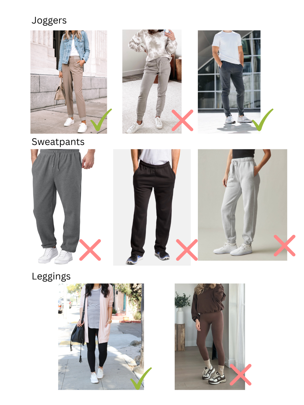 Everyone is expected to follow a “casual professional” (i.e., “business casual”) dress code while in lab. Pants should be presentable and appropriate for working in a professional environment and with families. Jeans and denim capris are acceptable when in lab, as long as they are not ripped or frayed. Joggers (loose, tapered pants) are permitted provided they are clean and reasonably fitted. Joggers should not be excessively baggy or resembling sleepwear. If you choose to wear joggers, your outfit ensemble should be casual professional (e.g., not wearing sweatshirt as well). Sweatpants are not permitted, including pants made from fleece or traditional sweatshirt material, or pants primarily intended for sleeping or lounging. Leggings (tight, form-fitting workout clothes) are permitted if they are worn as tights (i.e., under a skirt, dress, shorts, or long shirt that fully covers the bottom). Shorts are permitted if they are twill or chino material and reach at least to your mid-thigh (Bermuda-length shorts, however, are more appropriate). T-shirts without inappropriate graphics, text, cut-outs, etc. are acceptable. Sweatshirts are acceptable when paired with jeans or more professional pants (i.e., not when paired with joggers). The following are NOT allowed: short-shorts, low-cut shirts, strapless tops, visible undergarments (including bralettes, sports bras, or underwear/boxers), or workout/gym clothes (e.g., sweatpants, yoga pants). Additionally, clothing that reveals the stomach or midriff area of the body are not allowed. Strapped tops are not allowed unless they are considered business casual/professional (e.g., sleeveless blouse). For guidance on shorts guidelines, see the DevPsy Lab Summerwear Guide (below).