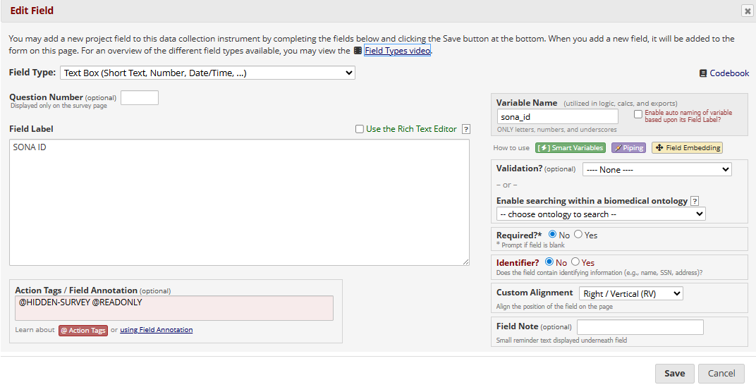 You’ll also need to add these two fields to the landing page of your REDCap questionnaire if they aren’t already there: